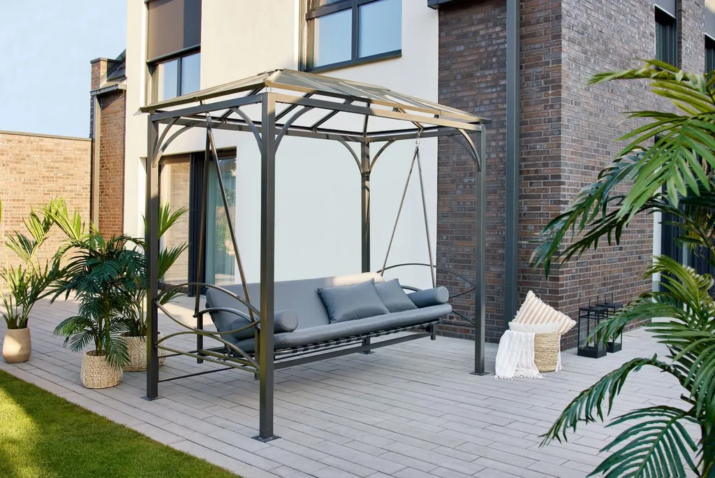Outsunny Hollywoodschaukel Schaukelbank Gartenliege 3-Sitzer Mit Seitenwänden Grau 240x140x197cm
