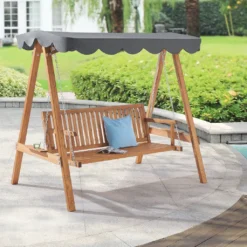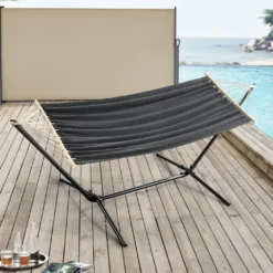 Hängematte Mit Gestell Hängeschaukel 200 X 100 Cm Indoor Outdoor Baumwolle Bis 120 Kg Dunkelgrau
