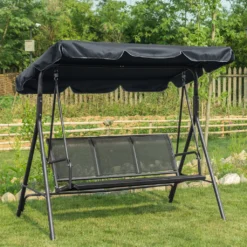 MCombo 3-Sitzer Hollywoodschaukel Gartenschaukel Gartenliege Schaukelbank 8007BK (Schwarz)