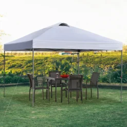 Outsunny Faltpavillon Pop-Up-Zelt Gartenpavillon Rollentasche Oxford-Gewebe 3,6 X 3,6m Hellgrau+Weiß