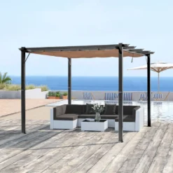 Outsunny Pavillon Faltpavillon Gartenzelt Mit Seitenwänden Popup Khaki 3,25×3,25×2,95cm