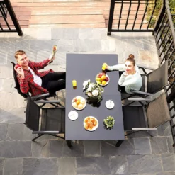 SONGMICS 9er Set, Balkonmöbel, Esstisch Und Stühle, Aus PE-Rattan, Terrassenmöbel GGF009B02