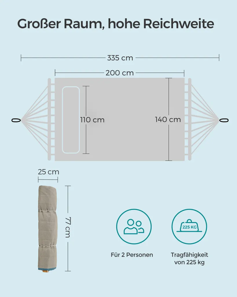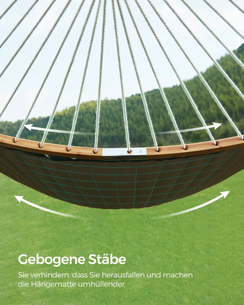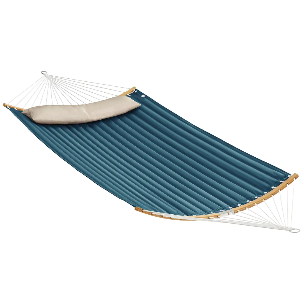 Songmics Hängematte Für 2 Personen, Gepolstert, Outdoor Hängematte Mit Trennbaren Bambusstangen, Camping-Hängematte Mit Kissen, 200 X 140 Cm, Max. 225 Kg Belastbar, Blau-beige