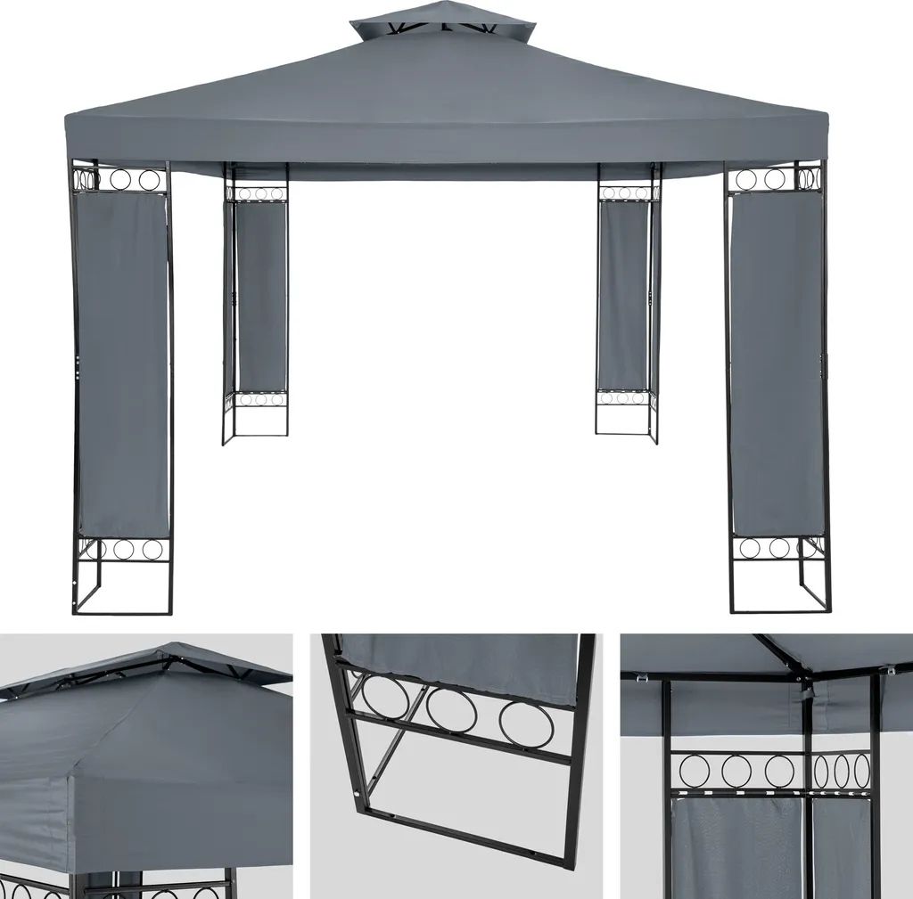 Tectake Gartenpavillon Leyla 3,9×2,9m – Anthrazit