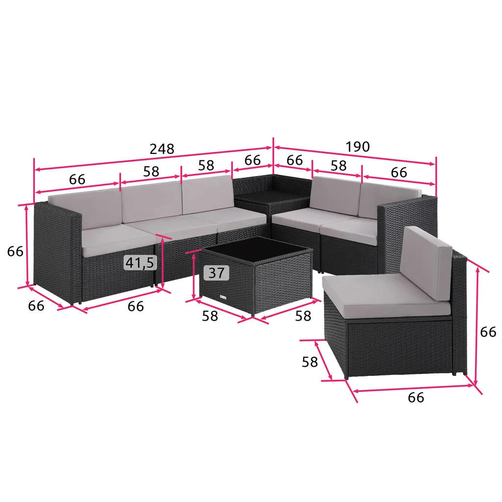 Tectake Rattan Lounge Verona – Schwarz