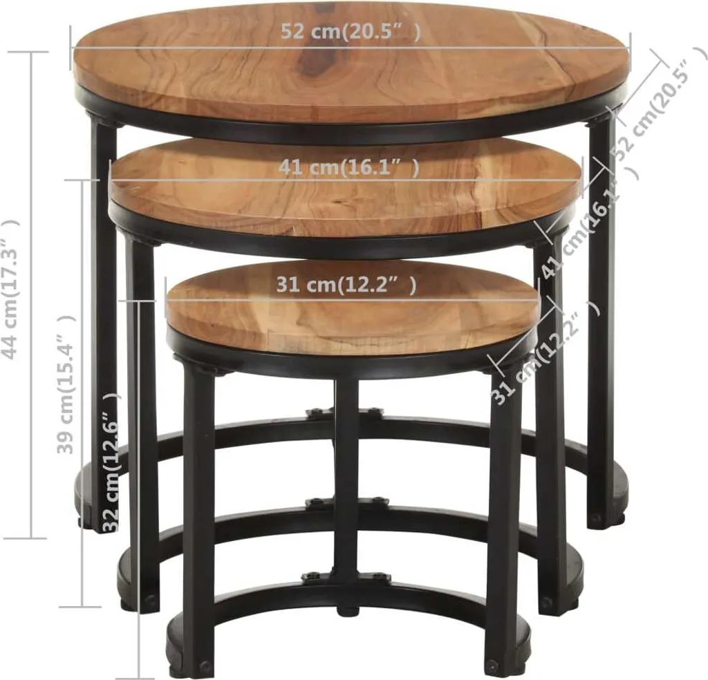 VidaXL Beistelltische 3 Stk. Massivholz Akazie