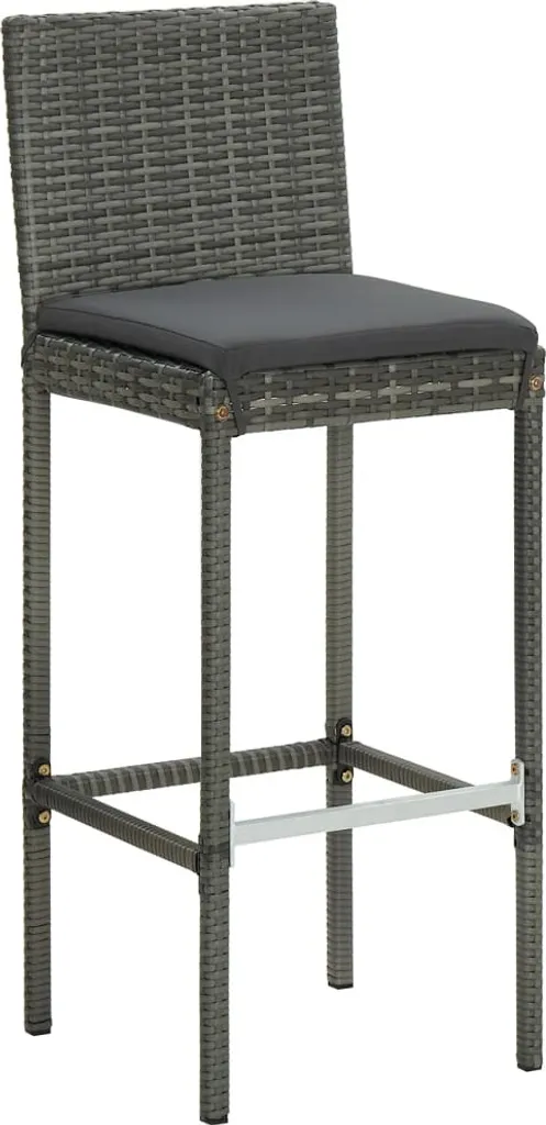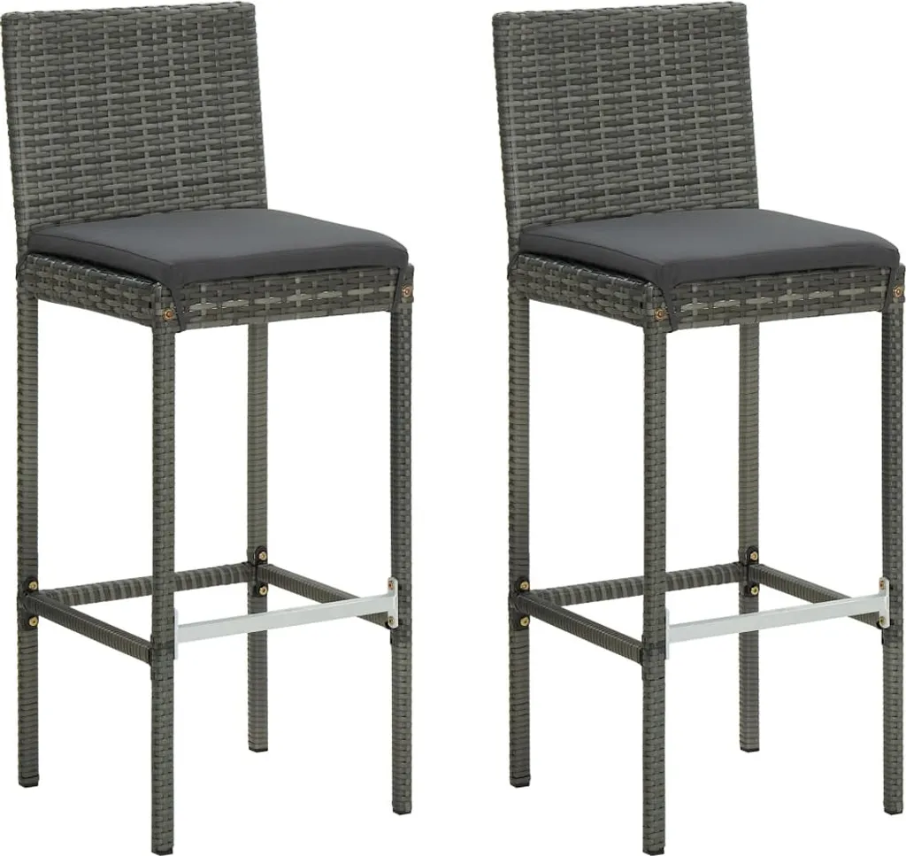 VidaXL Garten-Barhocker Mit Kissen 2 Stk. Grau Poly Rattan