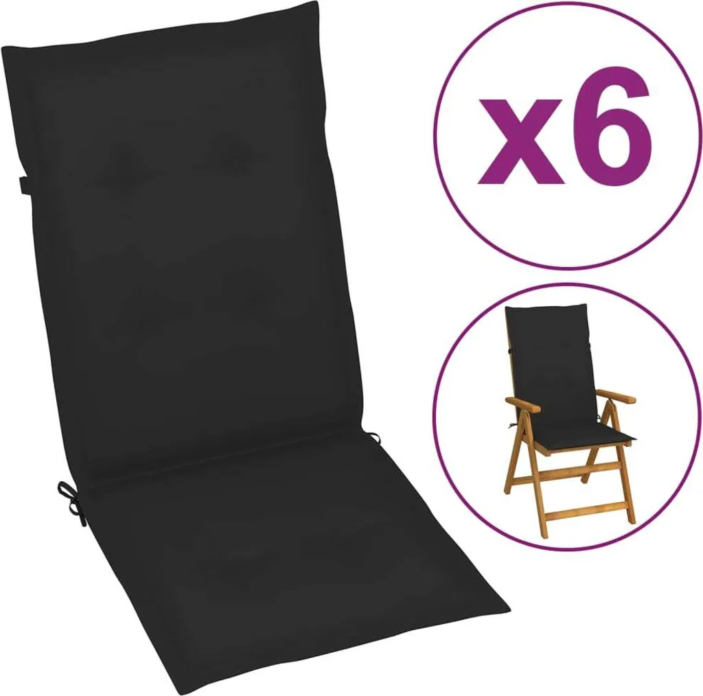 VidaXL Gartenstuhlauflagen 6 Stk. Schwarz 120x50x3 Cm