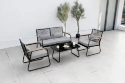 5-teiliges Gartenmöbel-Set Sydney 3, Edelstahl, Textilene Grau