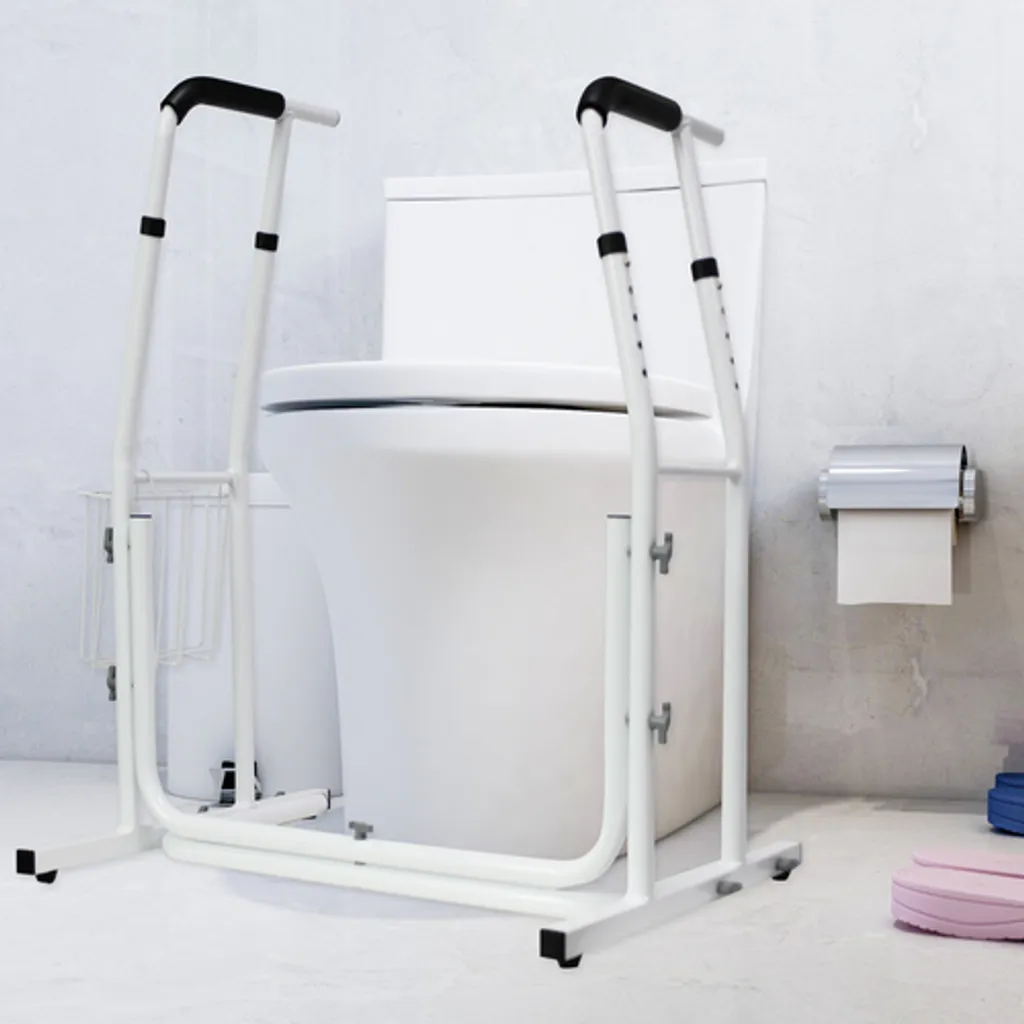 XMTECH Mobile WC-Aufstehhilf Toiletten Höhenverstellbar Inkl. Ablagekorb Stützgestell Haltegriff Für Bad, Belastbar Bis 200kg